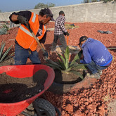 Colocación de plantas, pasto, piedras decorativas, sistemas de riego y elementos naturales.